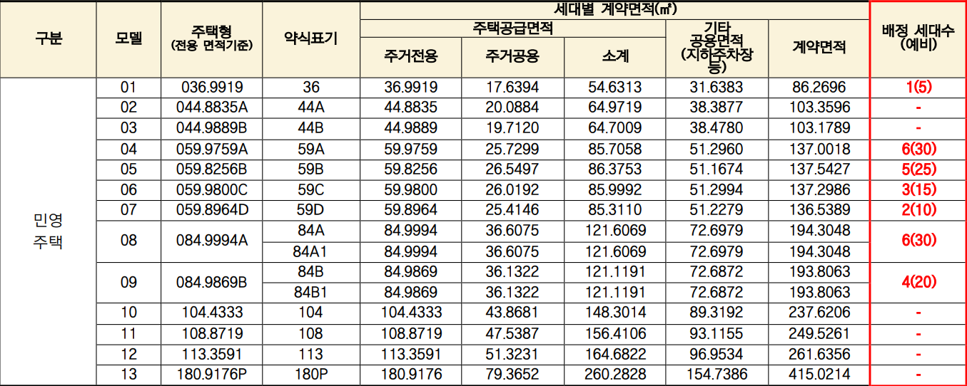 - 공급 면적 : 36 / 44 / 59 / 84 / 104 / 108 / 113 / 180㎡P타입