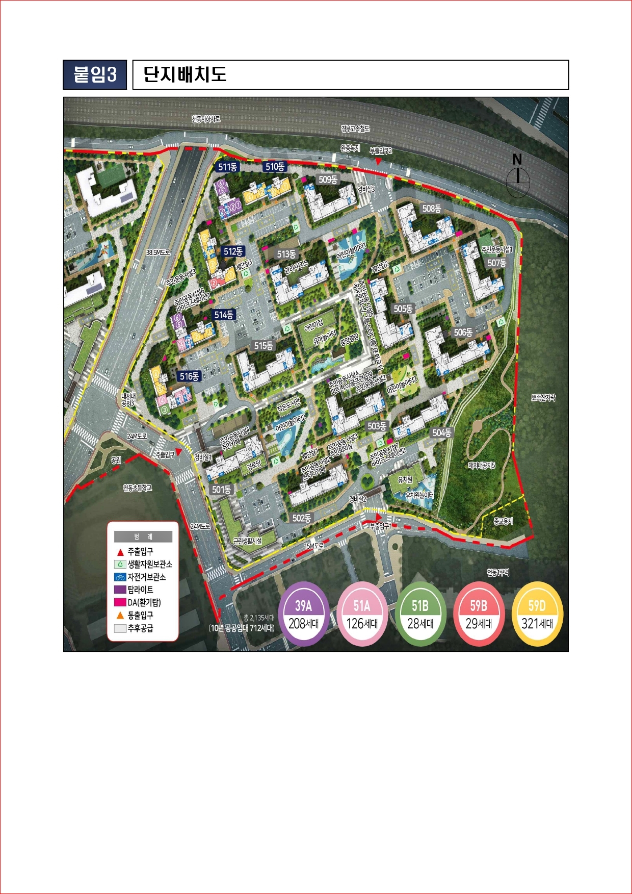 공급되는 전용면적 타입별 세대수는 39㎡ A타입 208세대, 51㎡ A타입 126세대, 51㎡ B타입 28세대, 59㎡ B타입 29세대, 59㎡ D타입 321세대로 총 712세대 중 지구 주민 우선공급분을 제외한 642세대를 일반 공급할 예정입니다.