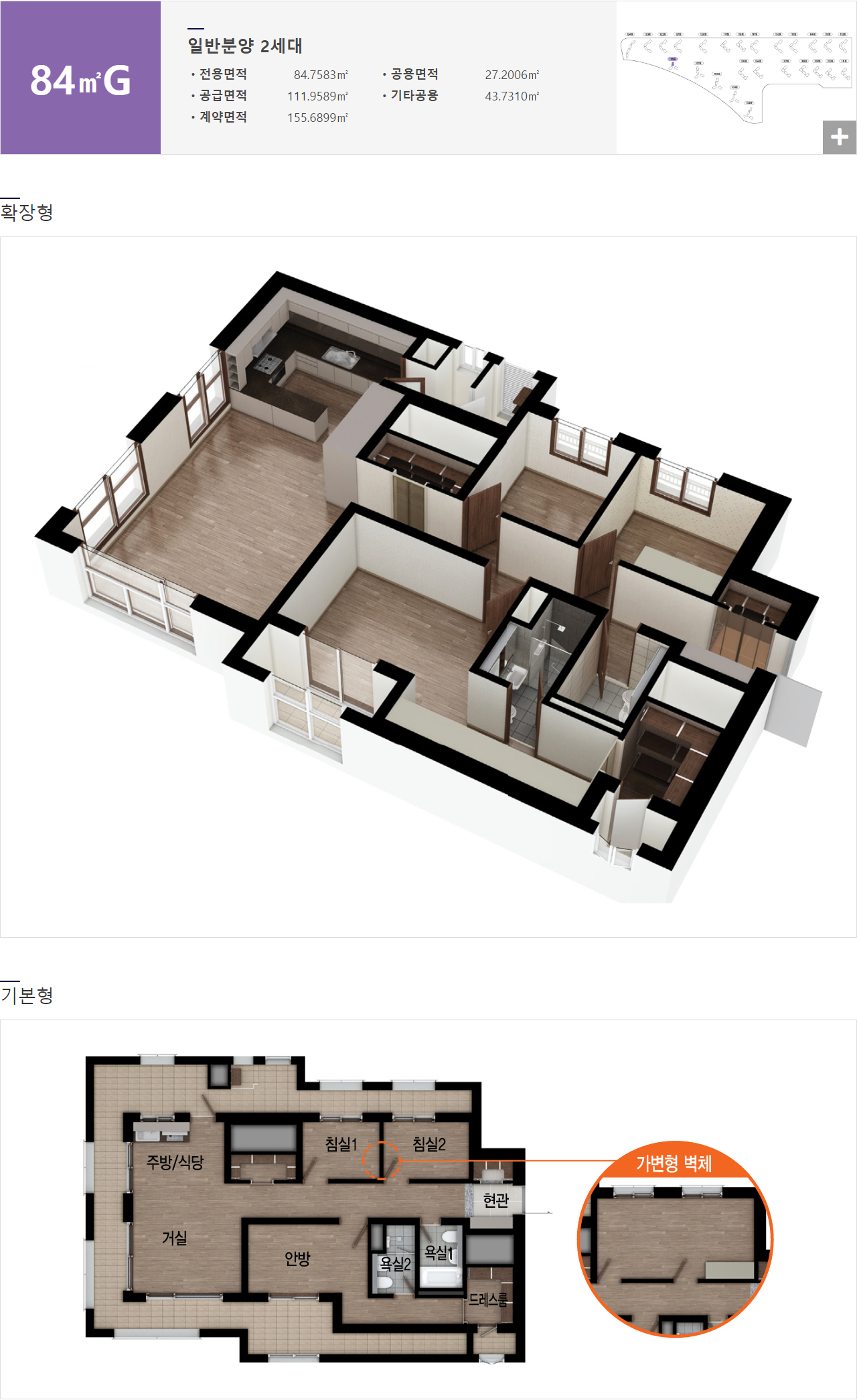 - 공급 면적 : 74㎡타입, 84㎡타입
