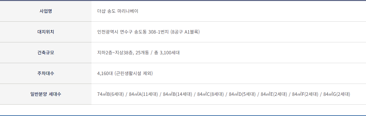 - 사업명 : 더샵 송도 마리나베이