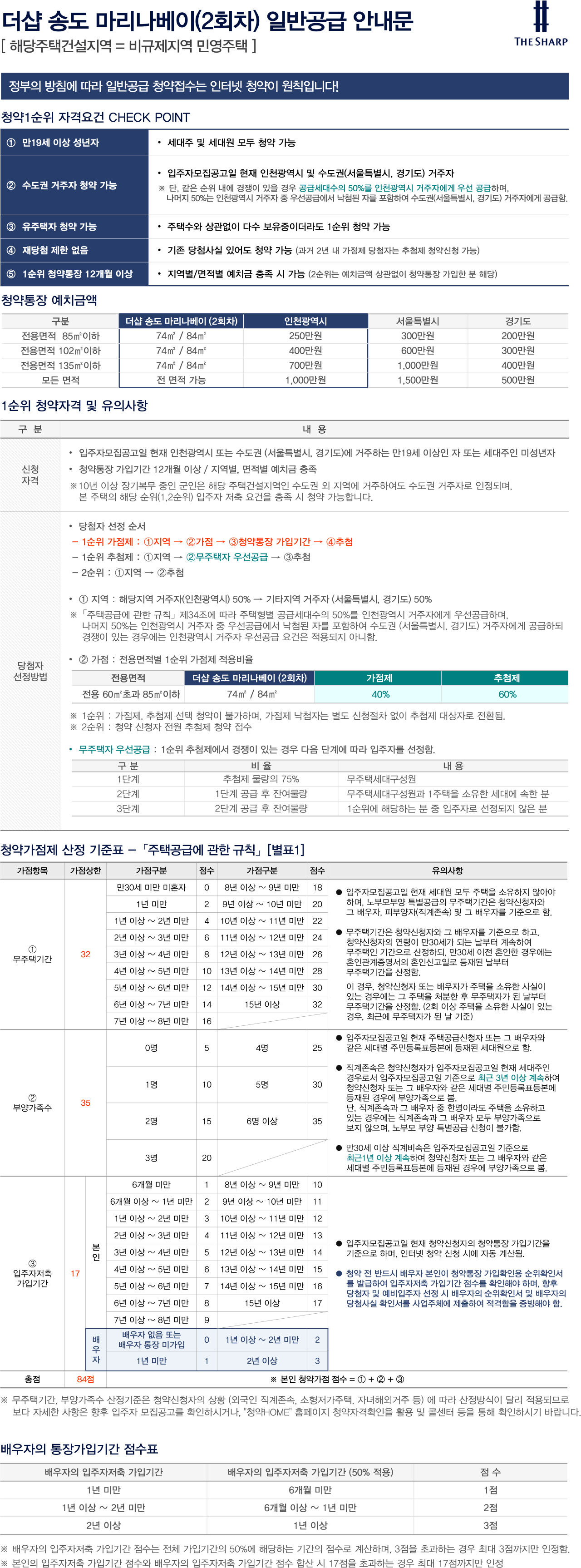 더샵 송도 마리나베이 아파트 조합원 자격 상실 50세대(2차) 일반 공급 안내문