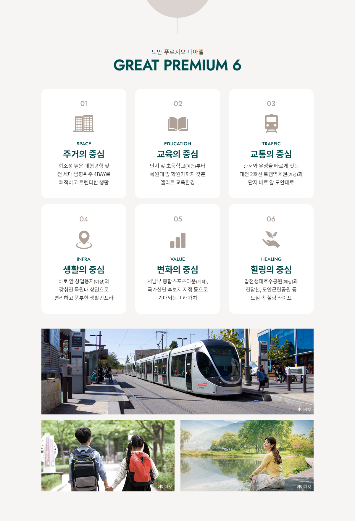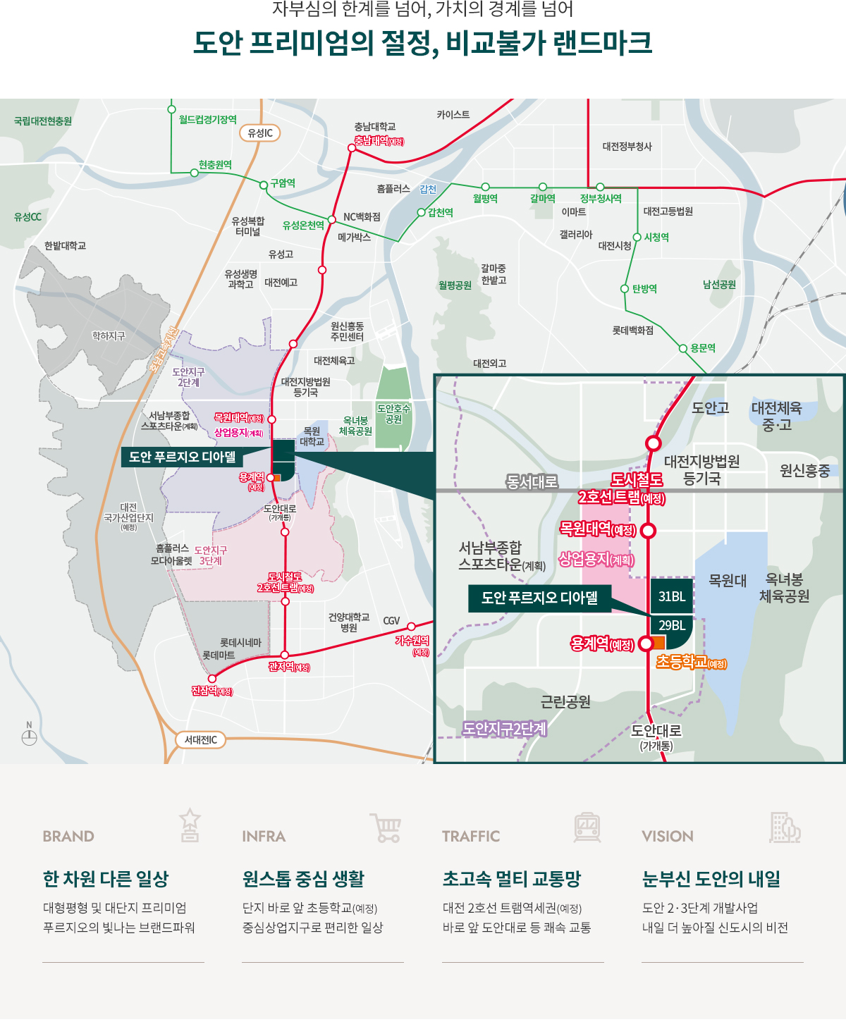 ✅ 교통 환경 : 대전 도시철도 2호선 트램역(예정)이 도보권 내에 위치해 있으며, 동서대로, 도안대로 등을 통해 대전 시내외로의 이동이 편리합니다.