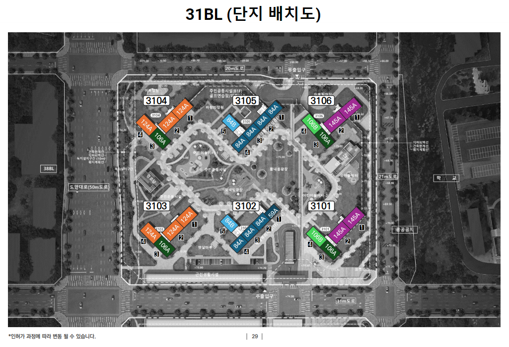 도안 푸르지오 디아델 아파트 31블록 · 29블록 단지 및 동호수 배치도