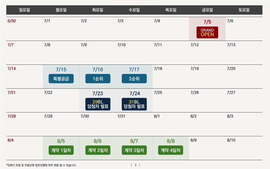 - 특별 공급 청약 접수 : 2024년 07월 15일 월요일