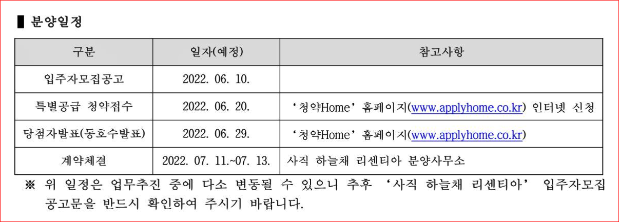 - 아파트 특별공급 청약접수 : 2022-06-20