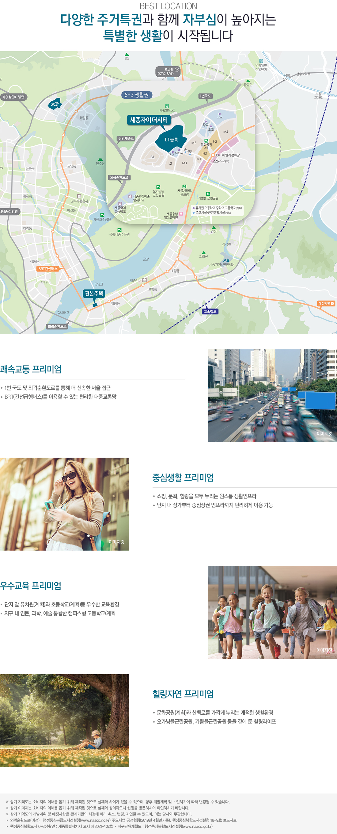 ✅ 교통 환경 : 단지 인근에 간선급행버스체계(BRT) 해밀리 정류장이 있어 세종시 내외 이동이 편리합니다. 또한, 세종로와 한누리대로와의 접근성이 좋아 차량 이동이 수월합니다.