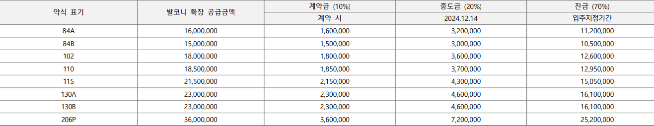 순천 그랜드파크 자이 아파트 분양가 및 발코니 확장비