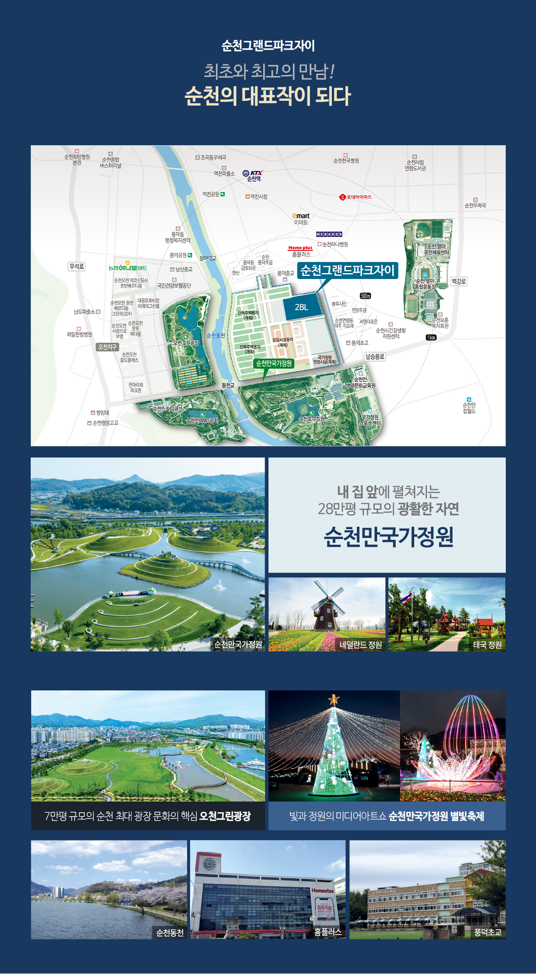 ✅ 자연 환경 : 순천만국가정원, 온천그린광장, 동천 등의 천혜의 자연환경과 인접해 있어 그린 라이프를 즐길 수 있습니다.