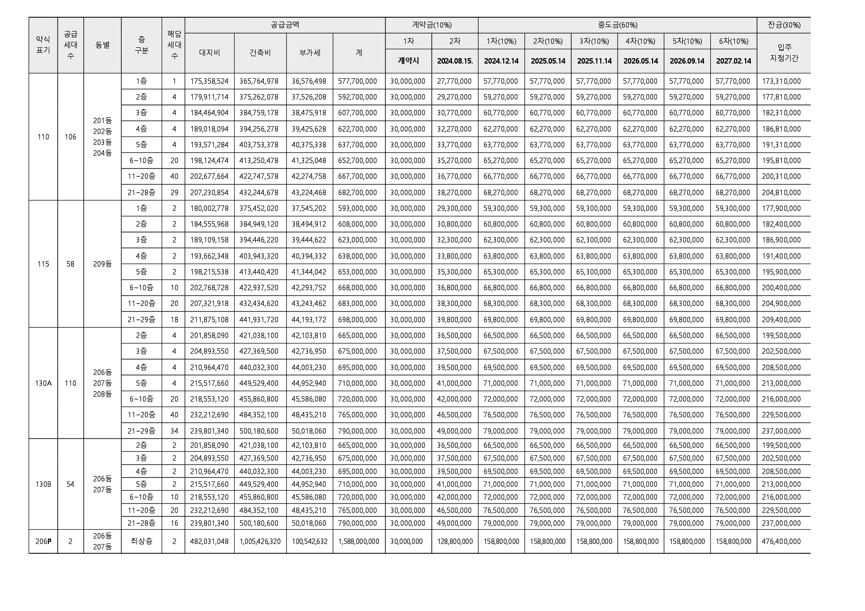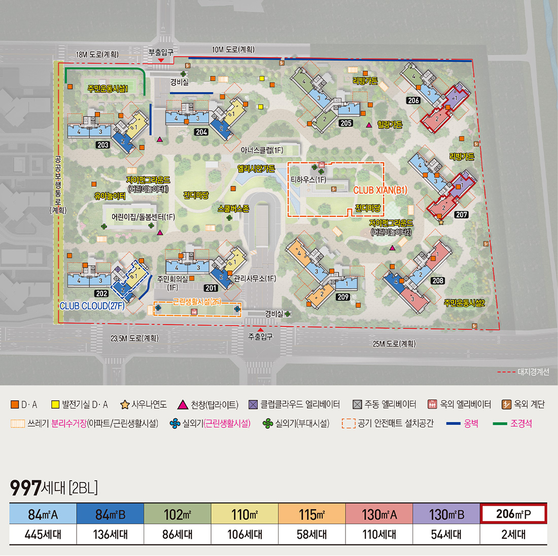 - 공급 면적 : 84㎡ / 102㎡ / 110㎡ / 115㎡ / 130㎡ / 206㎡