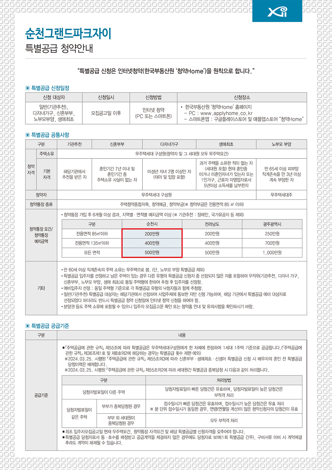 순천 그랜드파크 자이 아파트 일반 공급 및 특별 공급 청약 안내