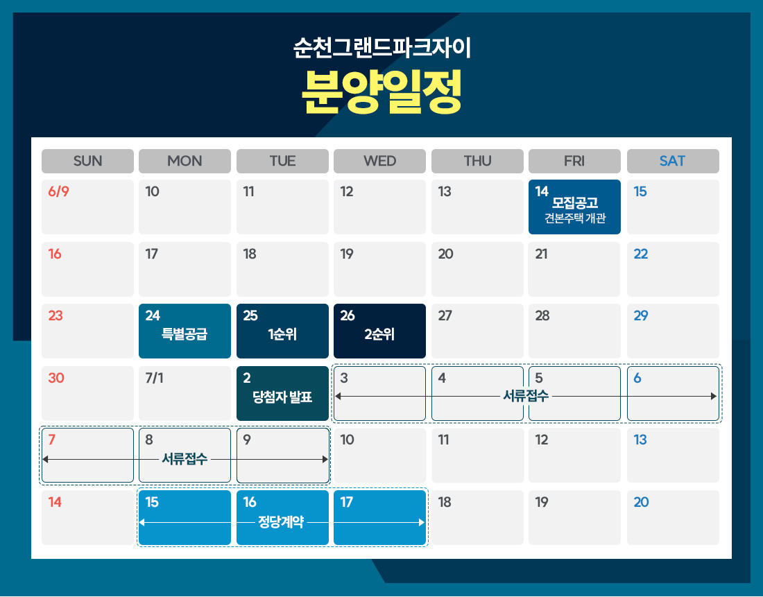 - 특별 공급 청약 접수 : 2024년 06월 24일 월요일