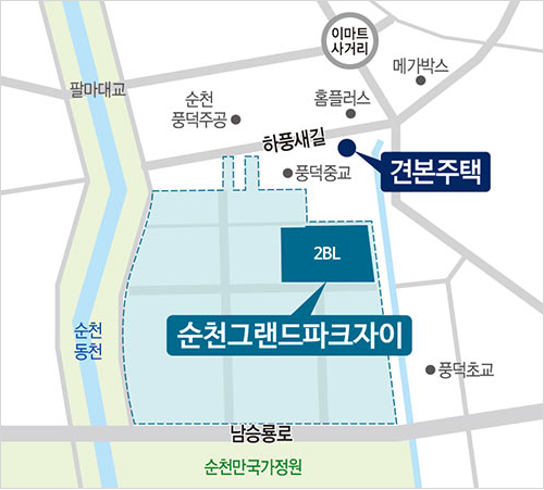 - 모델하우스(견본 주택) : 전남 순천시 풍덕동 305번지
