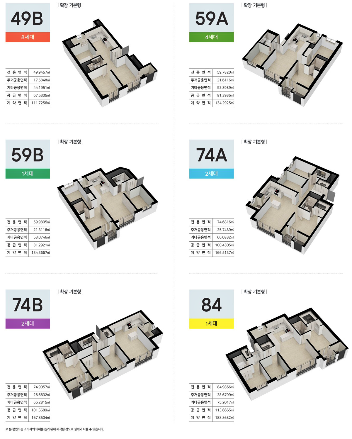 - 주택형: 49B, 59A, 59B, 74A 타입 소수 세대 공급