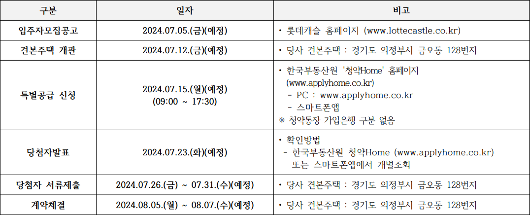 - 특별 공급 청약 접수 : 2024년 07월 15일 월요일