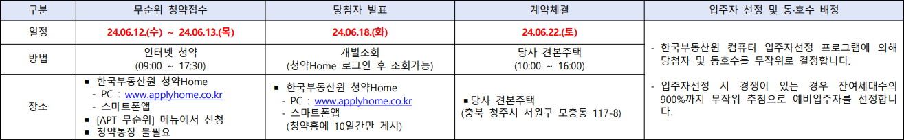 - 무순위 청약 접수 : 2024년 06월 12일 수요일 ~ 06월 13일 목요일