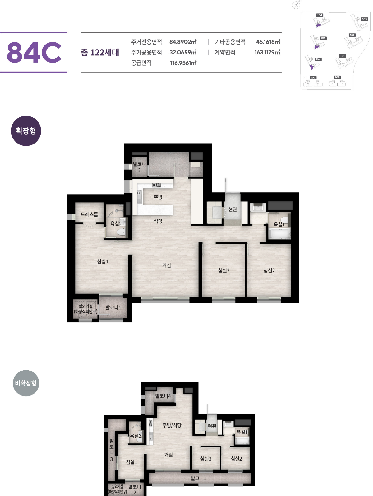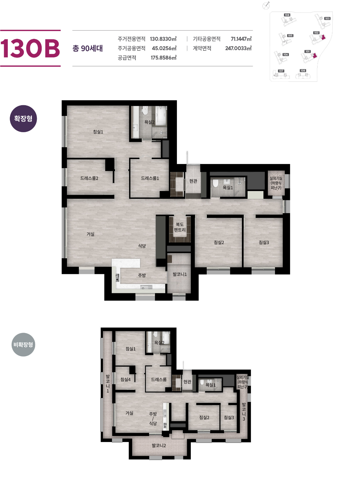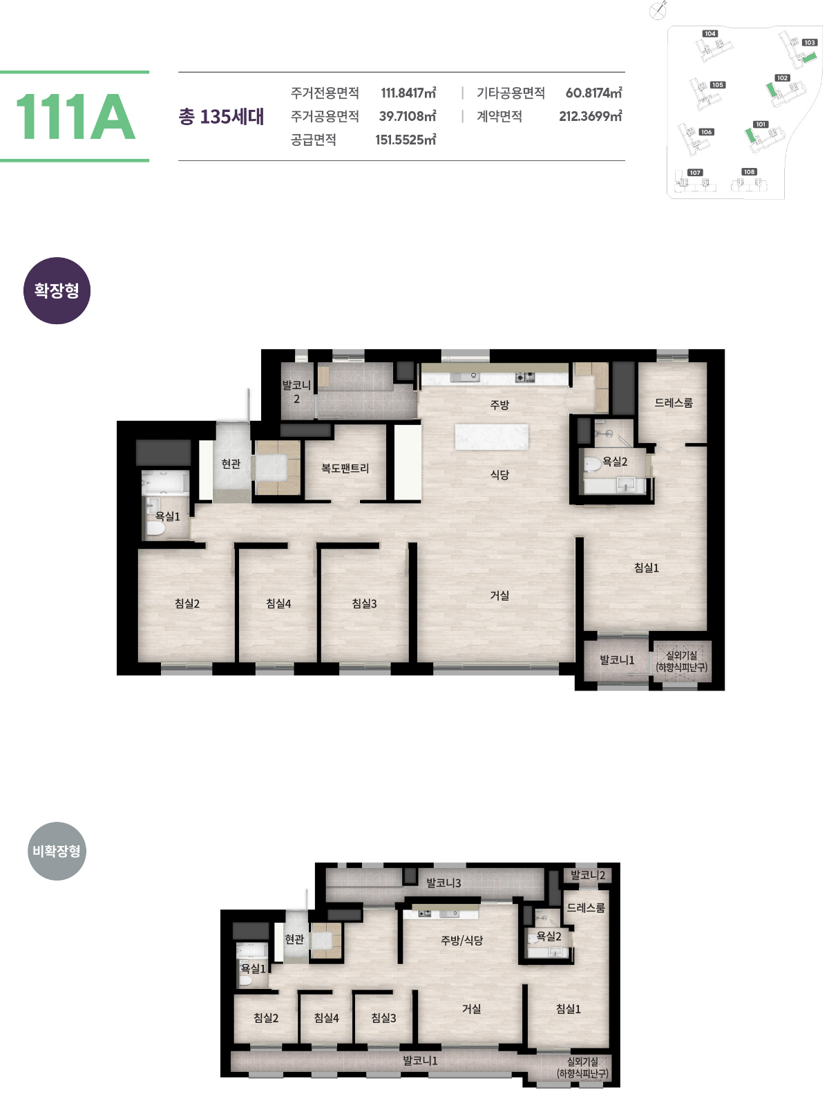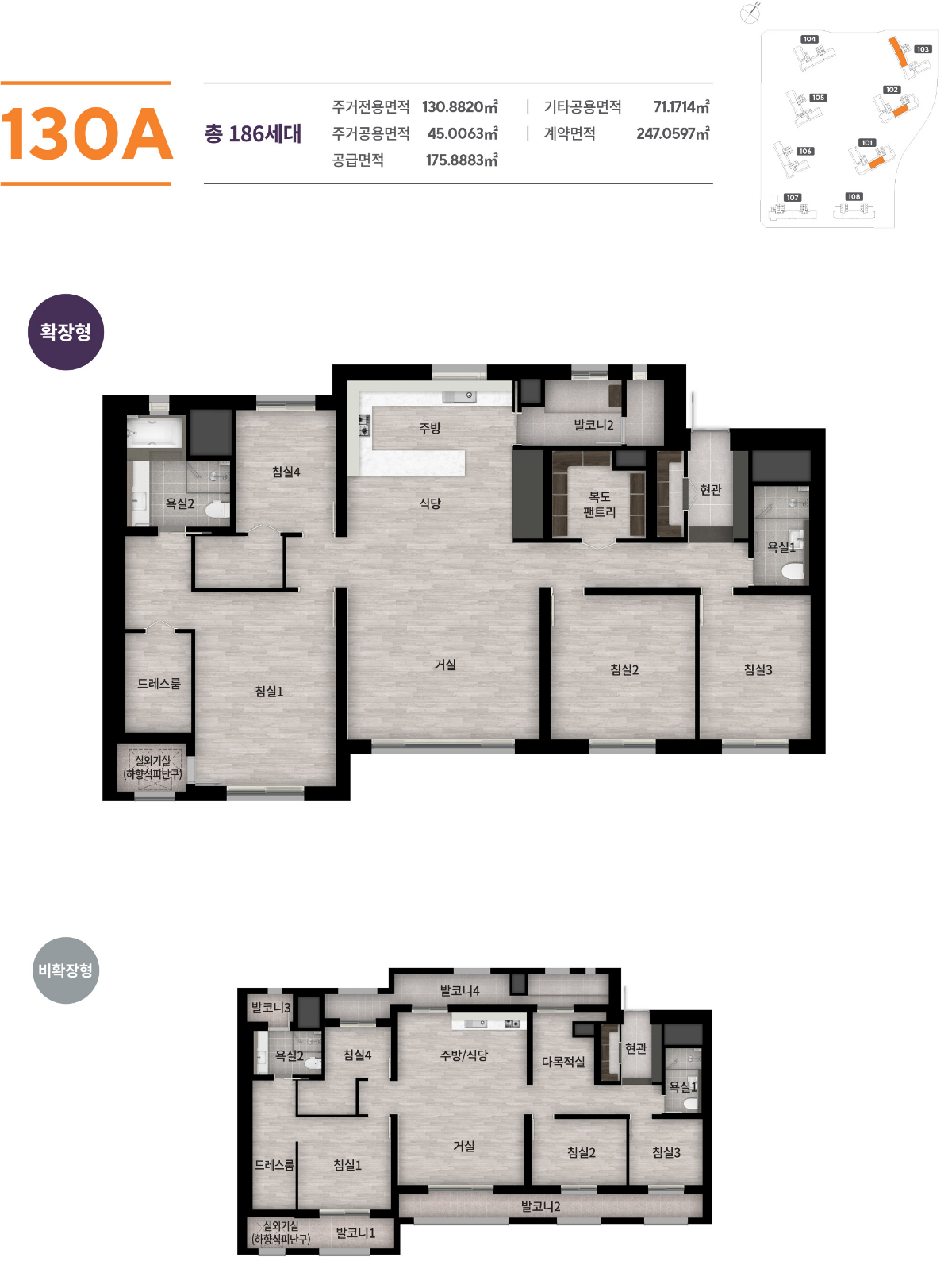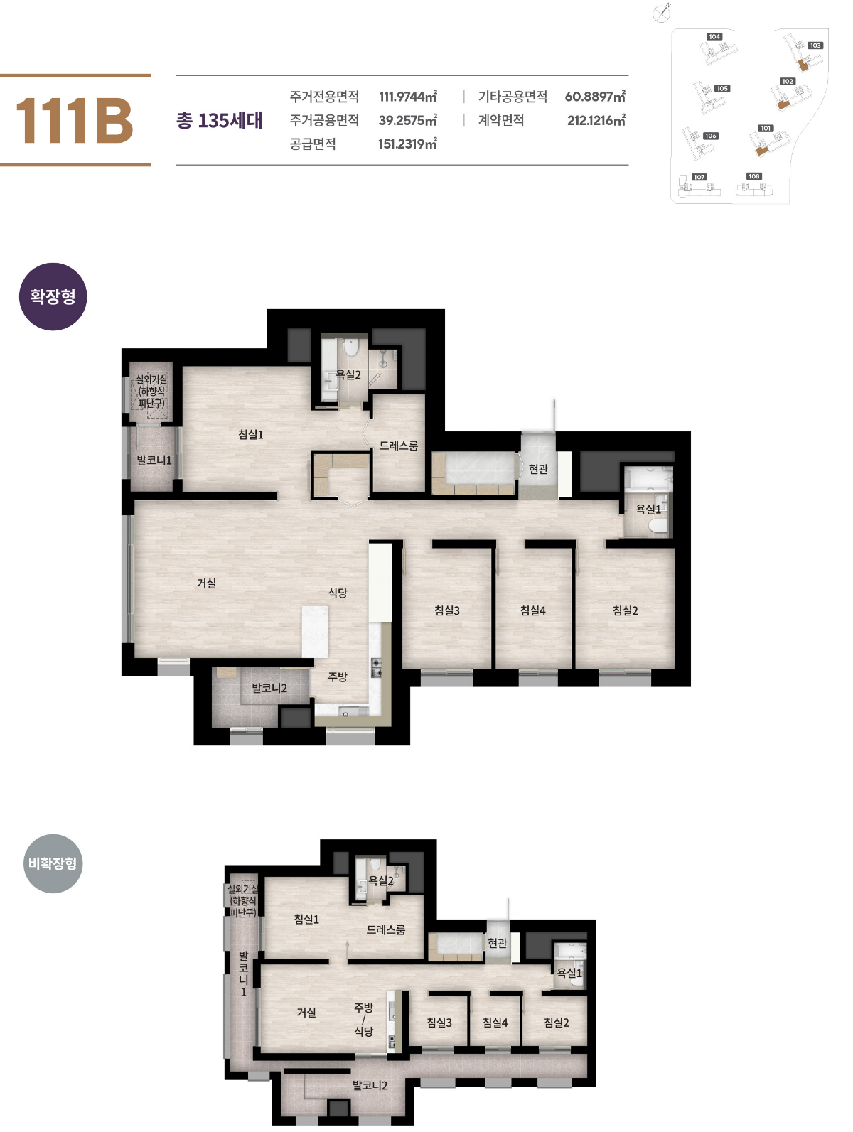 - 세대수 : 아파트 1,034세대(84㎡, 111㎡, 130㎡) / 오피스텔 234실