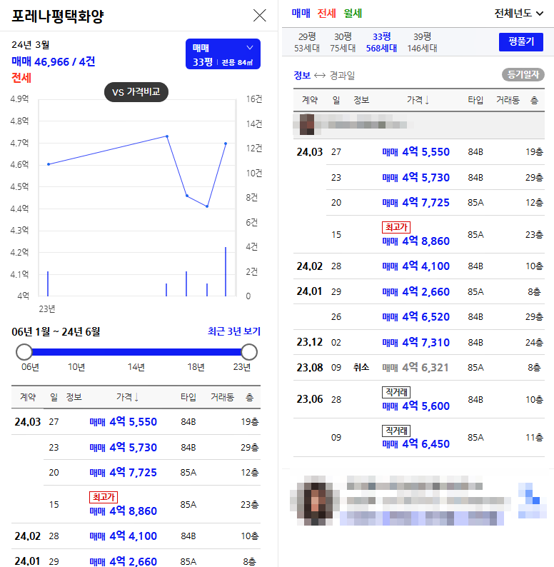 금회 무순위 청약(임의 공급 4차)공급하는 포레나 평택 화양 아파트 시세 및 최근 실거래가입니다. 현재 포레나 평택 화양 아파트 실거래가를 살펴 보면 입주전 분양권 거래로 84B타입 기준(층 수 상이) 약 4억 초반 ~ 4억 후반까지 거래가 되고 있습니다. 무순위 청약 공급 가격 또한 4억 2천~3천만 원으로 형성되어 있기 때문에 무순위 청약 후 시세 차익을 볼 수 있을 것으로 보이나, 무순위 청약 공급하는 세대 층 수가 전부 저층이다 보니 많은 시세 차익은 볼 수 없을 것으로 보이고 2025년 11월 아파트 입주 시점에 일부 시세 차익을 볼 수 있을 것으로 보입니다. 이점 유의 하시기 바랍니다.