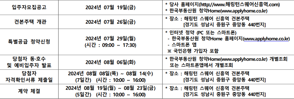- 특별 공급 청약 접수 : 2024년 07월 29일 월요일