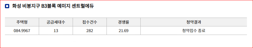 - 청약 결과 : 청약 접수 종료