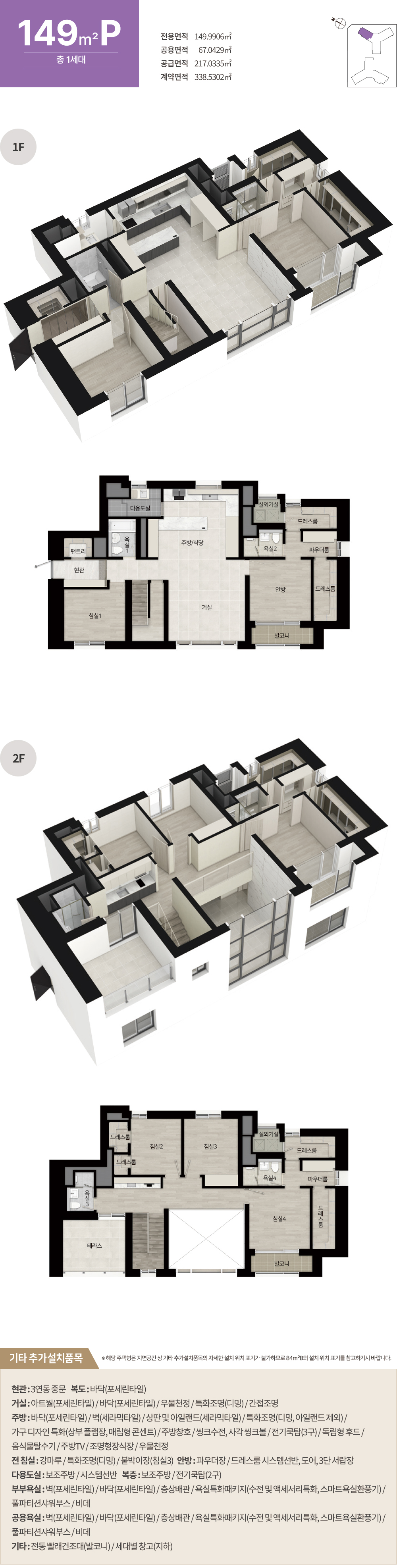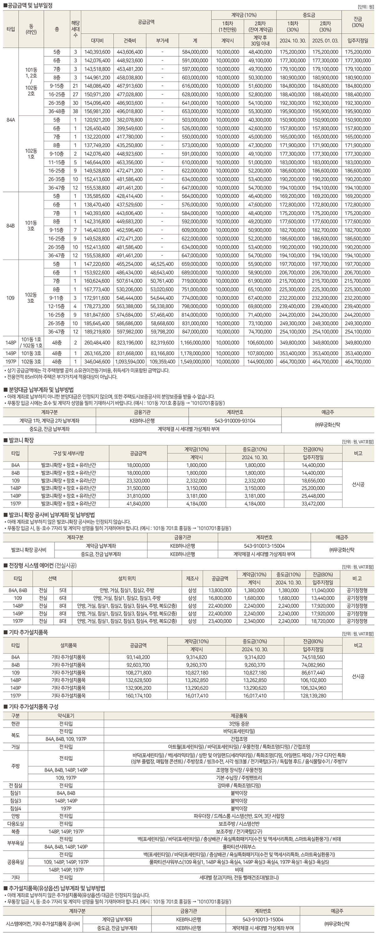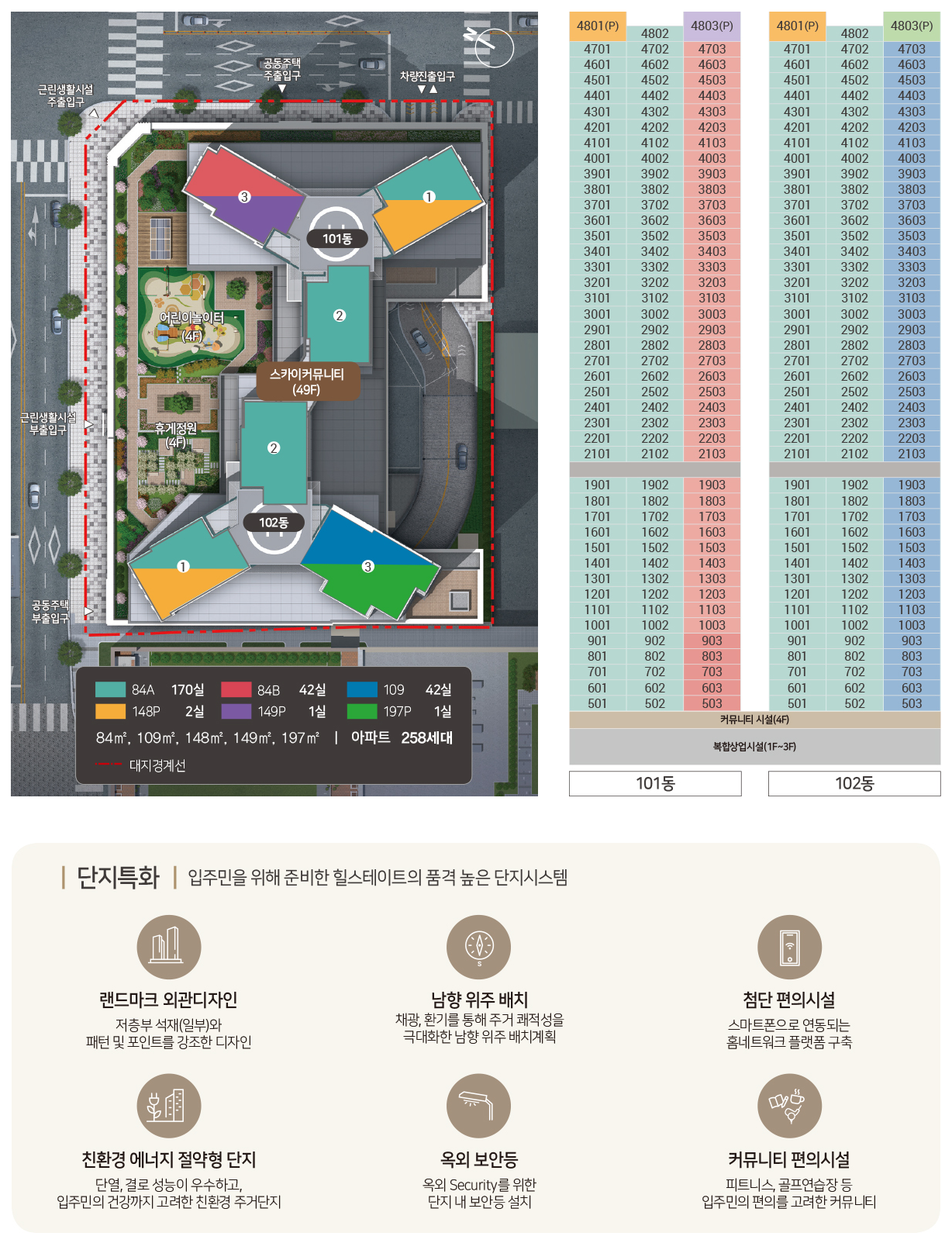 - 공급 면적 : 84㎡ A~B타입 / 109㎡ / 148㎡ P타입 / 149㎡ P타입 / 197㎡ P타입