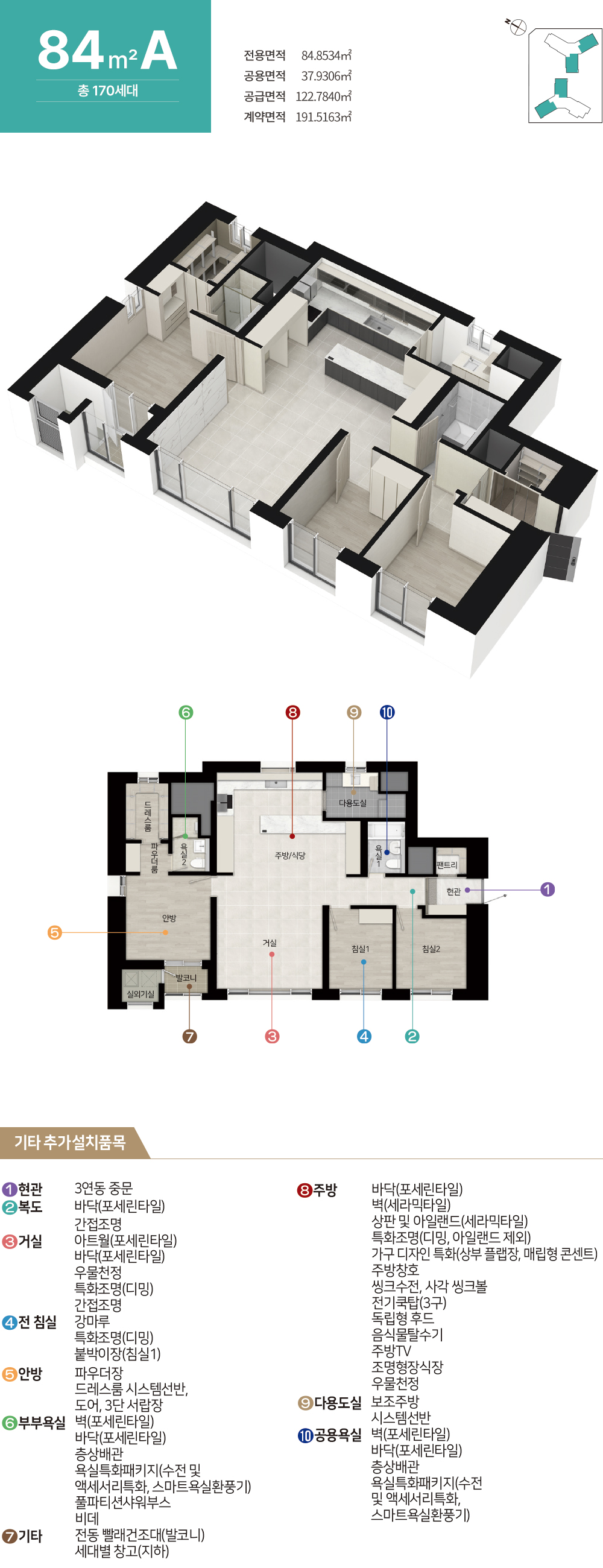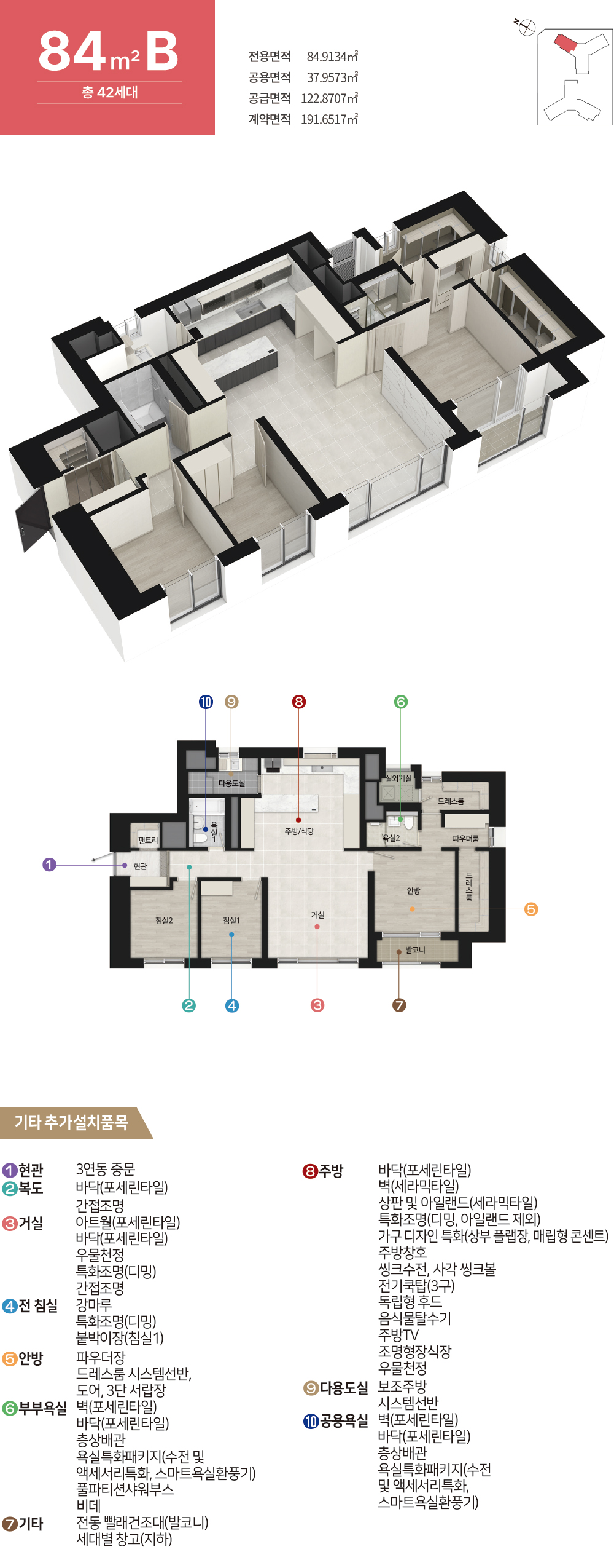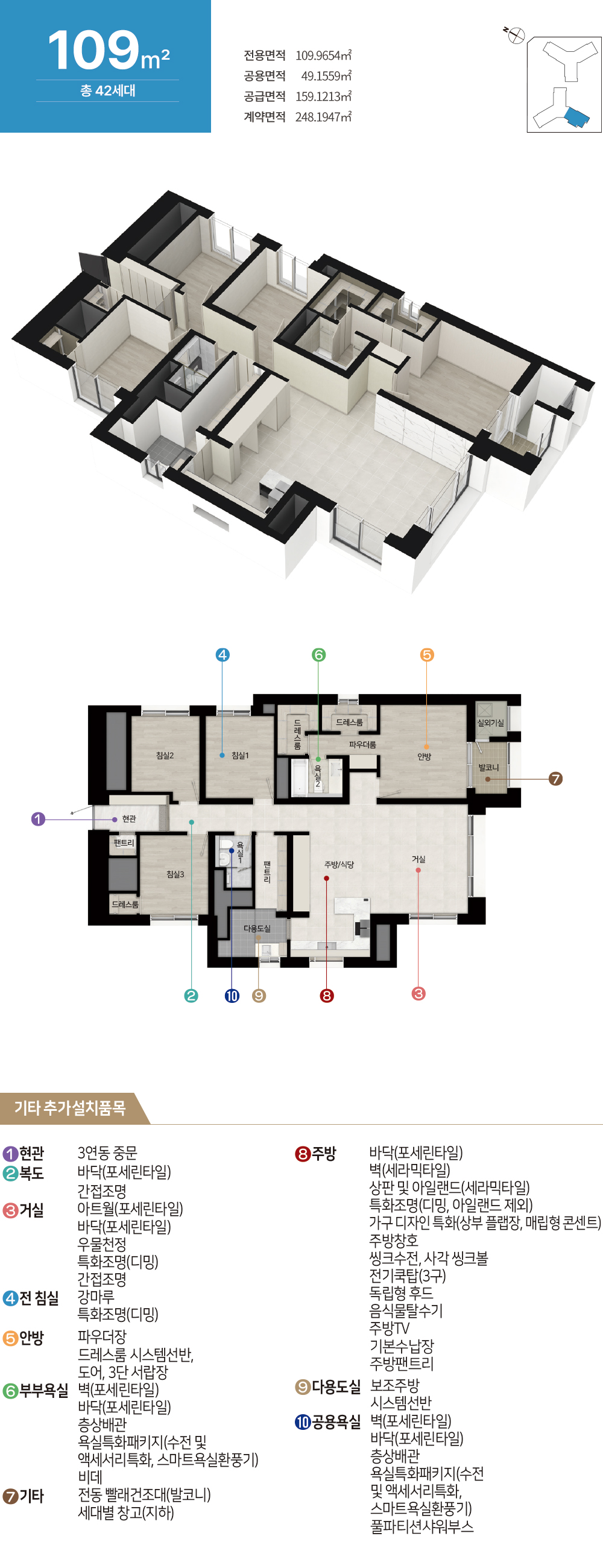 - 공급 면적 : 84㎡ A~B타입 / 109㎡ / 148㎡ P타입 / 149㎡ P타입 / 197㎡ P타입