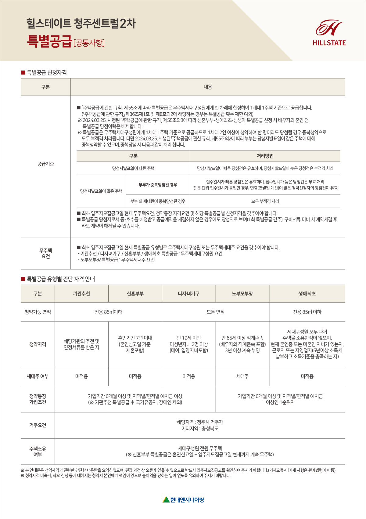 힐스테이트 청주 센트럴 2차 일반 공급 및 특별 공급 청약 안내
