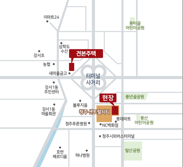 - 모델하우스(견본 주택) : 충북 청주시 흥덕구 비하동 35-28번지